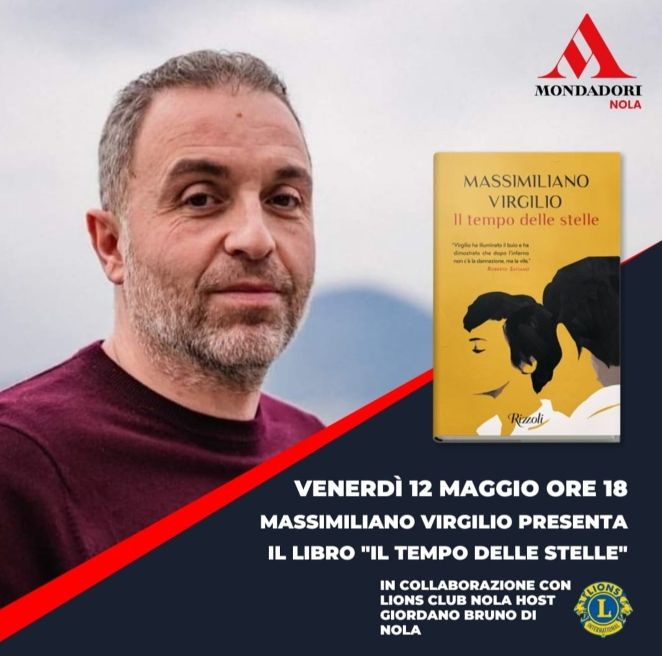 È lo scrittore, sceneggiatore ed autore televisivo Massimiliano Virgilio il nuovo ospite del caffè letterario della Mondadori di Nola. L’autore napoletano è atteso alle ore 18 di venerdì 12 maggio nel salotto culturale di piazza Marconi diretto dalla giornalista Autilia Napolitano dove presenterà il suo ultimo libro “Il tempo delle stelle” edito da Rizzoli.