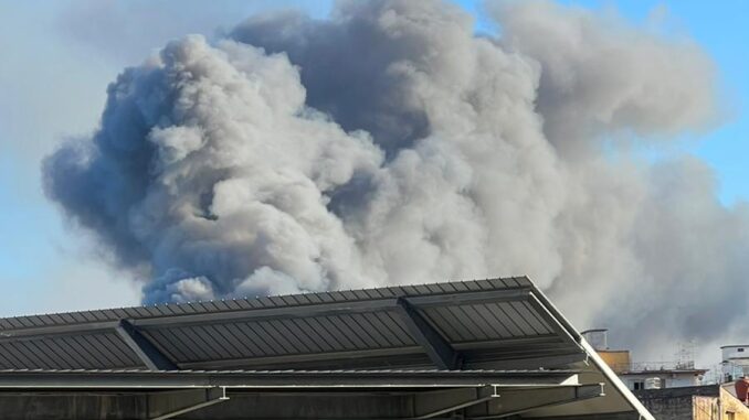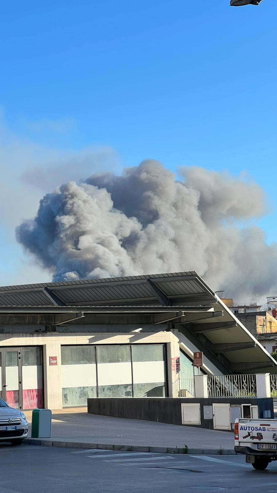 Un vasto incendio si è sprigionato nel tardo pomeriggio di oggi, intorno alle 18, tra Nola e Piazzolla esattamente in via Nola – San Gennaro, ad andare a fuoco un capannone della ditta Simonetti dove erano parcheggiati diversi automezzi. Sul posto operano diverse autobotti dei Vigili del Fuoco oltre alla Polizia di Stato. Per il momento non si conoscono i dettagli dell’accaduto.