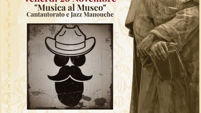 Domani, venerdì 26 novembre, alle ore 18.00 in scena “musica al museo. Cantautorato e jazz manouche” nel salone del museo storico archeologico di via Senatore Cocozza mentre sabato 27 sarà la chiesa di San Biagio ad ospitare, a partire dalle ore 19.00, lo spettacolo musicale del tenore Raffaele Sepe e del soprano Ellen Sepe dal titolo “Passione Eterna”.