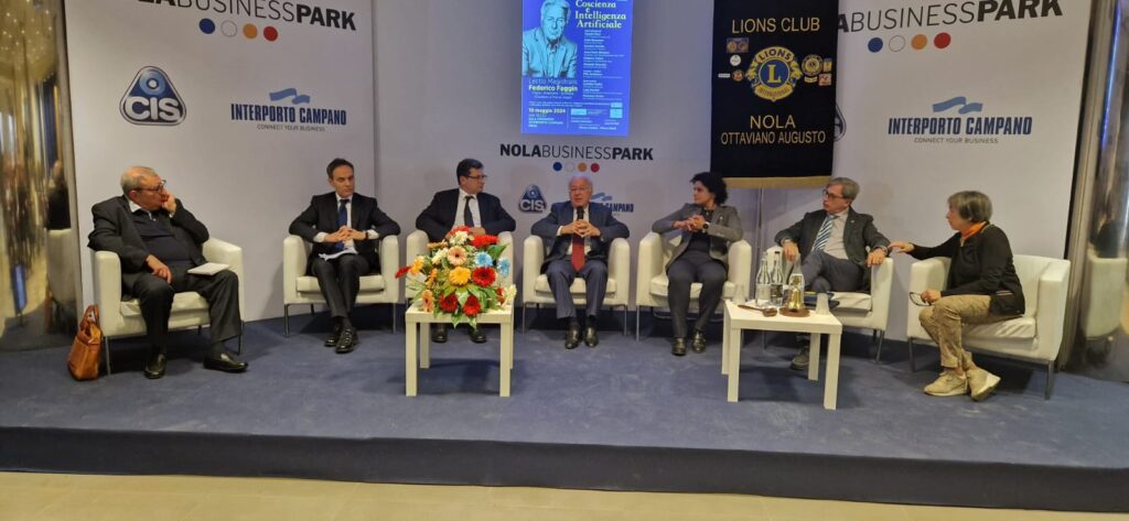 Nel suggestivo contesto della sala congressi dell’Interporto Nolano, si è tenuto questo pomeriggio di venerdì 10 maggio 2024 un convegno di grande rilevanza, intitolato “Coscienza ed Intelligenza Artificiale”. L’evento, organizzato dai Lions International Nola Ottaviano Augusto presieduto da Filly Auriemma con il patrocinio del Comune di Nola, Caserta e Napoli, ha attirato l’attenzione di numerosi partecipanti desiderosi di esplorare i temi all’ordine del giorno.