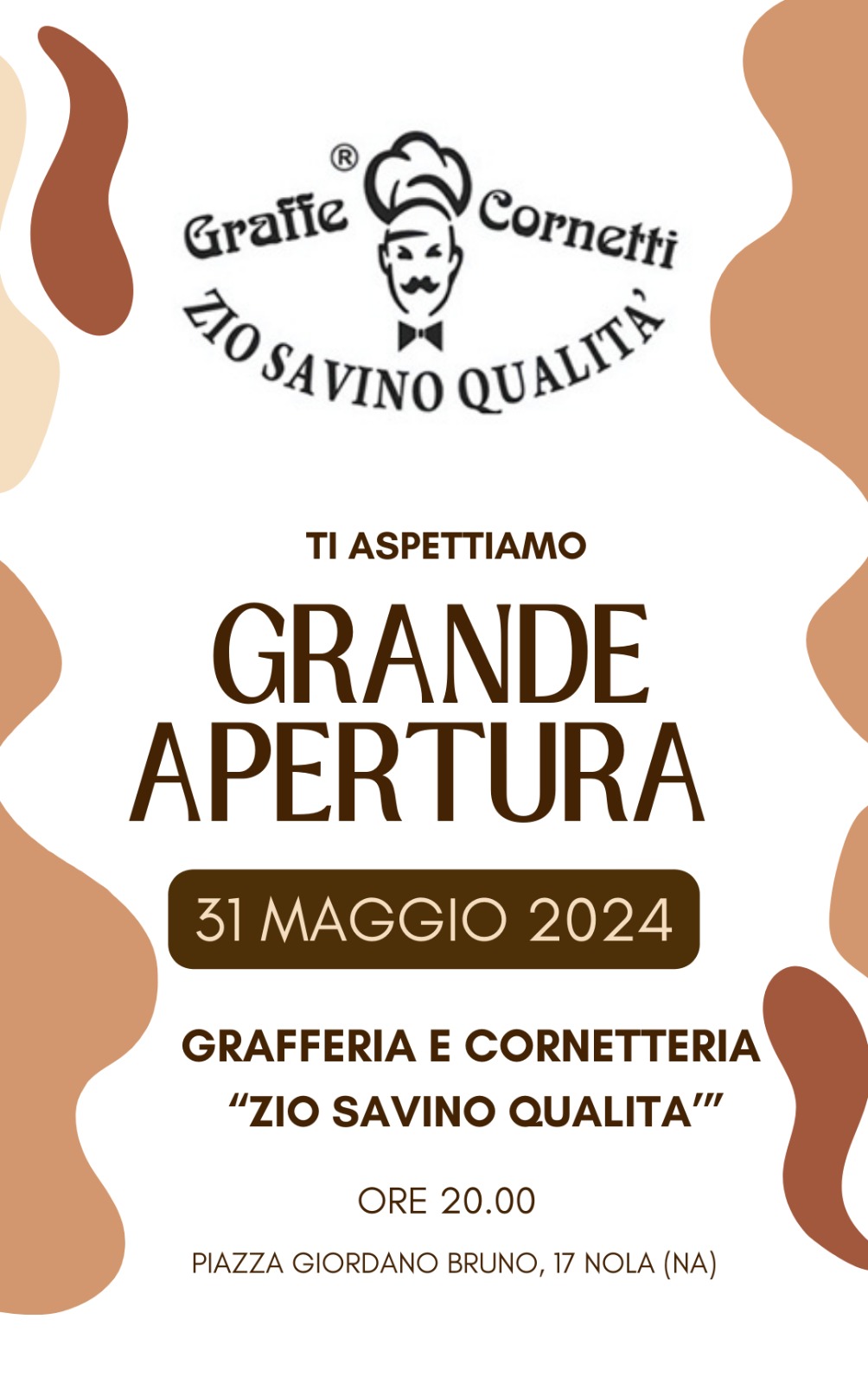 Grande attesa per l’inaugurazione della nuova Cornetteria e Grafferia di “Zio Savino Qualità”, prevista per venerdì 31 maggio in piazza Giordano Bruno. L’evento, fissato per le ore 20:00, promette di essere un’occasione imperdibile per gli amanti delle specialità dolciarie e per chiunque desideri trascorrere una serata all’insegna del gusto e della convivialità.