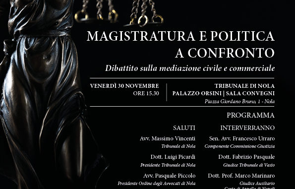 NOLA. Magistratura e politica a confronto, il 30 novembre presso il tribunale convegno con il senatore Urraro