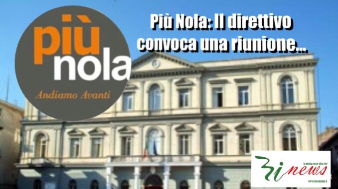 Nola. Il gruppo consiliare di maggioranza “Piu Nola” ha convocato per la serata di mercoledì una riunione con l’intera struttura della lista che ha partecipato alle passate elezioni amministrative. Saranno quindi invitati dal direttivo, non solo i due consiglieri eletti Vincenzo Iovino e Francesca Cutolo, ma l’intero gruppo di candidati e i suoi presentatori.
