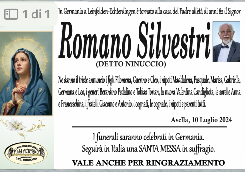 I funerali saranno celebrati in Germania. Seguirà in Italia una SANTA MESSA in suffragio.