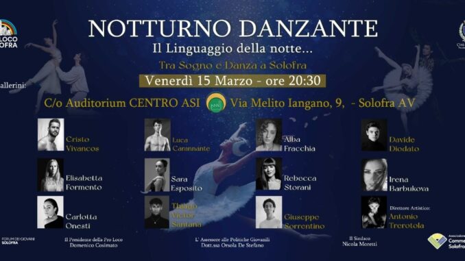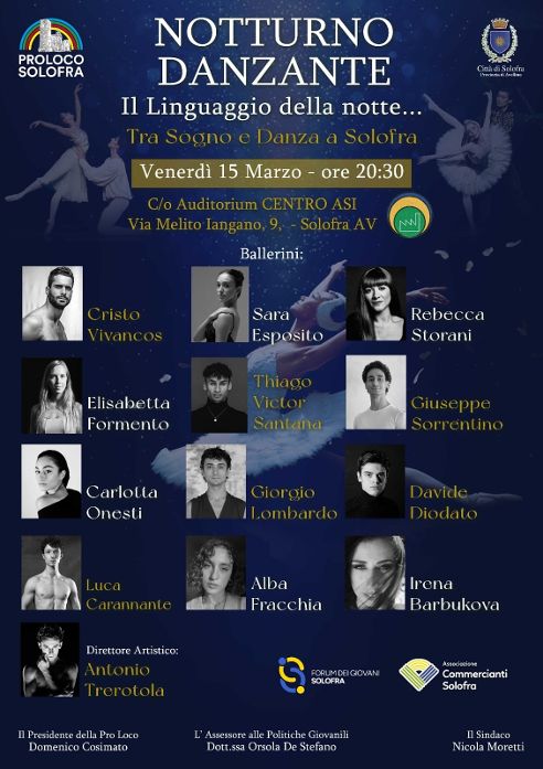 A guidare artisticamente questa serata unica sarà il celebre ballerino Antonio Trerotola, orgoglio di Solofra e una stella di fama internazionale. Il palcoscenico si accenderà grazie alle performance di 12 ballerini di calibro mondiale, affiancati da Trerotola nei prestigiosi teatri di tutto il mondo. Questi artisti offriranno al pubblico una straordinaria esperienza di danza, in cui il linguaggio universale del movimento si fonderà con la poesia della notte.