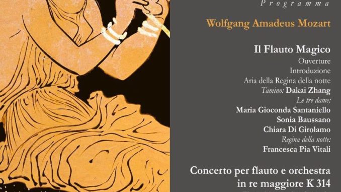 La grande musica sinfonica in piazza Natale a Nusco. L’evento, promosso dall’Amministrazione Comunale, è in programma per domenica, 11 giugno, con inizio alle ore 19.00. Si esibirà l’Orchestra del Conservatorio di Musica “Domenico Cimarosa” di Avellino, diretta dal maestro Giuseppe Camerlingo. Suggestivo il programma musicale. Saranno, infatti, eseguite arie tratte da “Il Flauto Magico” di Wolfgang Amadeus Mozart. Interpreti saranno Dakai Zhang, Maria Gioconda Santaniello, Sonia Baussano, Chiara Di Girolamo e Francesca Pia Vitali. A seguire Concerto per flauto e orchestra in Re maggiore K314, al flauto Alessandra Orlando. A seguire la Sinfonia n.1 in Do maggiore op.21 di Ludwig van Beethoven.