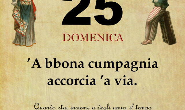 ‘O PRUVERBIO D’ ‘O JUORNO. Domenica 25 ottobre 2020 25/10/2020 binews.it ATTUALITA', EVIDENZA, Il Proverbio del Giorno 0 di Gianni Polverino ’A bbona cumpagnia accorcia ’a via. Quando stai insieme a degli amici il tempo passa velocemente.