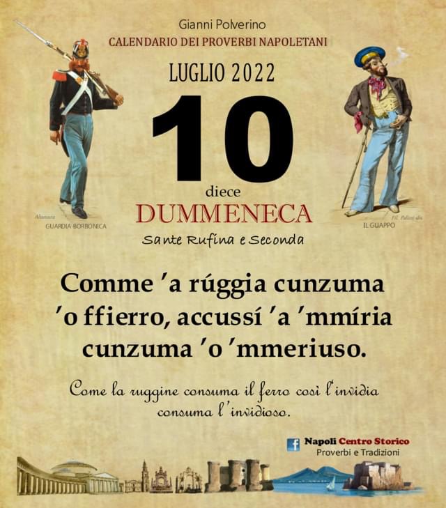 ‘O PRUVERBIO D’ ‘O JUORNO. Domenica 10 luglio 2022