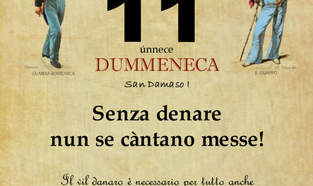 ‘O PRUVERBIO D’ ‘O JUORNO. Domenica 11 dicembre 2022 11/12/2022 binews.it ATTUALITA', EVIDENZA, Il Proverbio del Giorno 0 di Gianni Polverino Senza denare nun se càntano messe! Il vil danaro è necessario per tutto anche per le funzioni religiose.