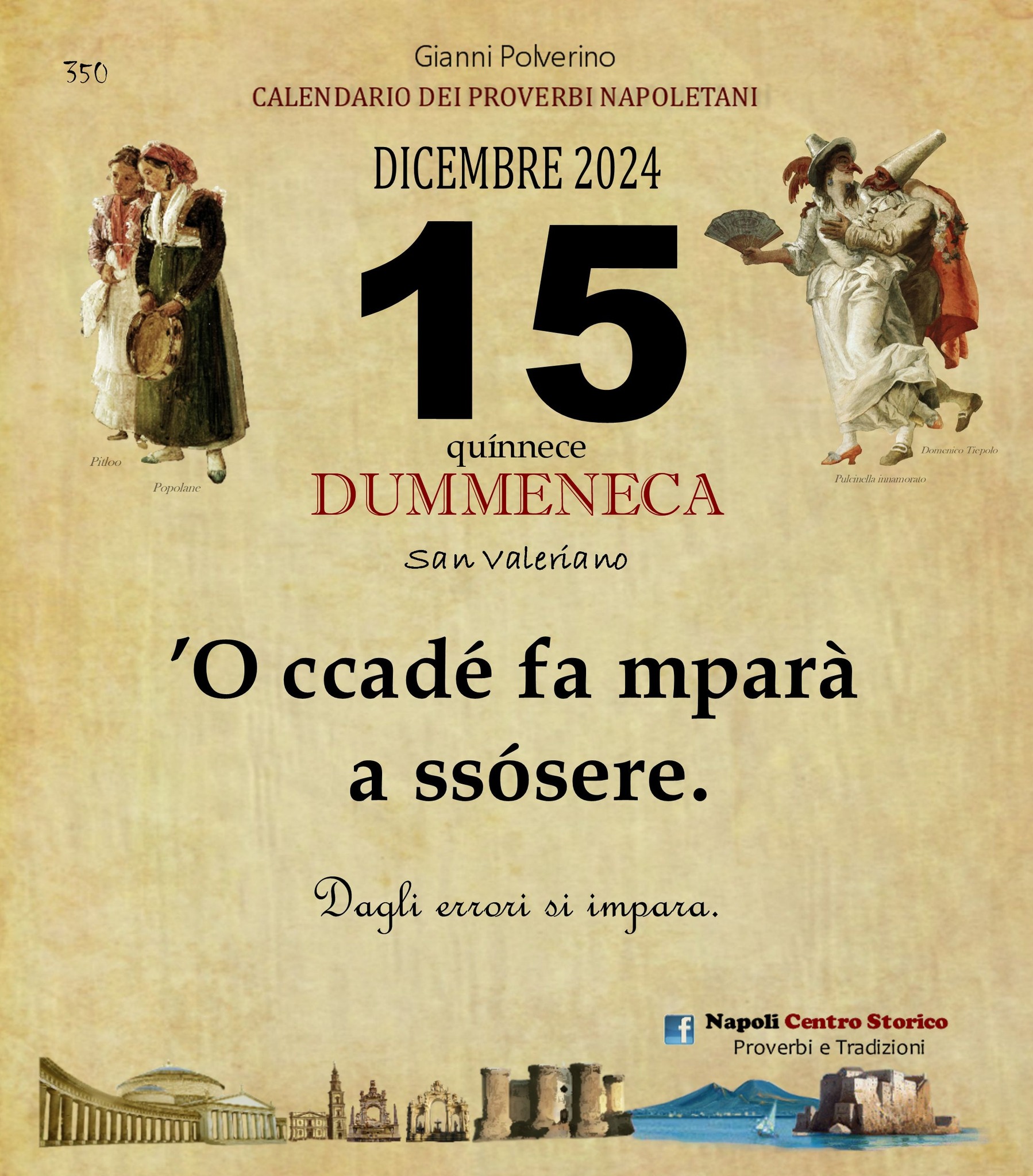 ‘O PRUVERBIO D’ ‘O JUORNO. Domenica 15 dicembre 2024 15/12/2024 binews.it ATTUALITA', EVIDENZA, Il Proverbio del Giorno 0 di Gianni Polverino’O ccadé fa mparà a ssósere.Dagli errori si impara.