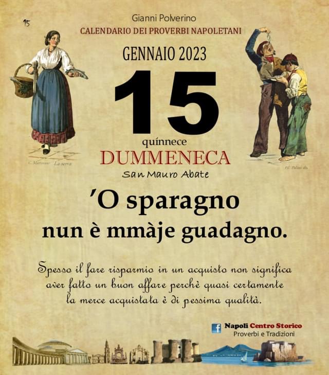 ‘O PRUVERBIO D’ ‘O JUORNO. Domenica 15 gennaio 2023