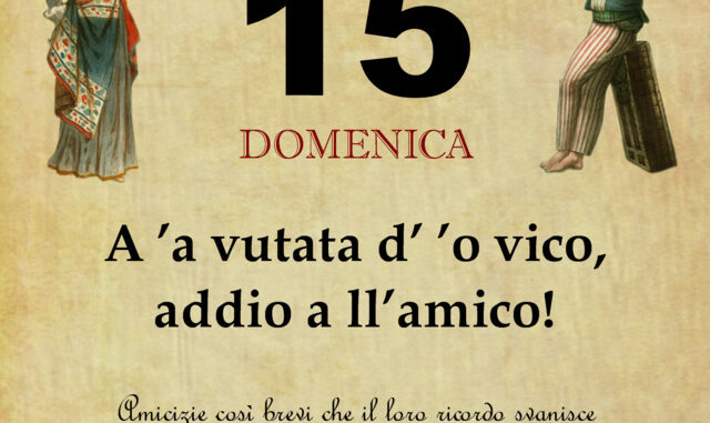 ‘O PRUVERBIO D’ ‘O JUORNO. Domenica 15 novembre 2020 15/11/2020 binews.it ATTUALITA', EVIDENZA, Il Proverbio del Giorno 0 di Gianni Polverino A ’a vutata d’ ’o vico, addio a ll’amico! amicizie così brevi che il loro ricordo svanisce subito dopo l’incontro