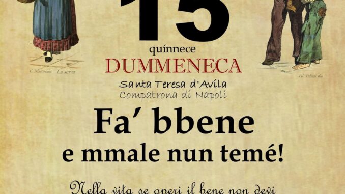‘O PRUVERBIO D’ ‘O JUORNO. Domenica 15 ottobre 2023 15/10/2023 binews.it ATTUALITA', EVIDENZA, Il Proverbio del Giorno 0 di Gianni Polverino Fa’ bbene, e mmale nun temé! Nella vita se operi il bene non devi temere mai nulla.