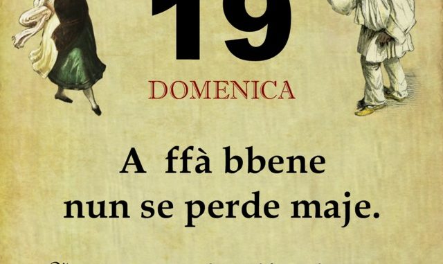 ‘O PRUVERBIO D’ ‘O JUORNO. Domenica 19 maggio 2019 19/05/2019 binews.it ATTUALITA', EVIDENZA, Il Proverbio del Giorno 0 di Gianni Polverino A ffà bbene nun se perde maje. Non si perde mai a fare del bene al prossimo, anzi, dopo ci si sente soddisfatti e felici.