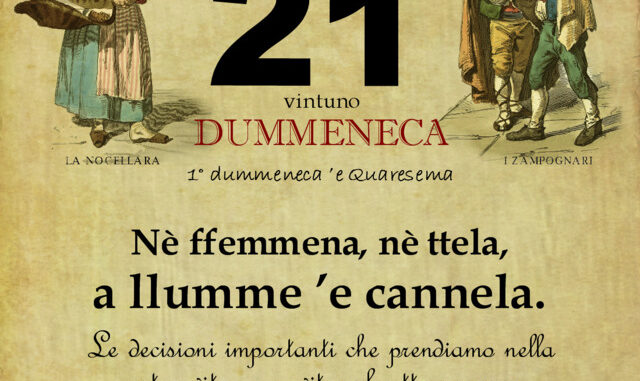 ‘O PRUVERBIO D’ ‘O JUORNO. Domenica 21 febbraio 2021 21/02/2021 binews.it ATTUALITA', EVIDENZA, Il Proverbio del Giorno 0 di Gianni Polverino Nè ffemmena, nè ttela, a llumme ’e cannela. Le decisioni importanti che prendiamo nella nostra vita, per evitare brutte sorprese, vanno esaminate attentamente.
