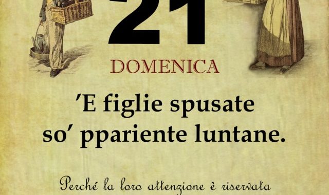 ‘O PRUVERBIO D’ ‘O JUORNO. Domenica 21 ottobre 2018 21/10/2018 binews.it ATTUALITA', EVIDENZA, Il Proverbio del Giorno 0 di Gianni Polverino ’E figlie spusate so’ ppariente luntane. Perché la loro attenzione è riservata alla nuova famiglia.