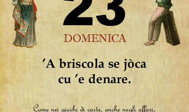 ‘O PRUVERBIO D’ ‘O JUORNO. Domenica 23 agosto 2020 23/08/2020 binews.it ATTUALITA', EVIDENZA, Il Proverbio del Giorno 0 di Gianni Polverino ’A briscola se jòca cu ’e denare. Come nei giochi di carte, anche negli affari, occorre denaro contante.