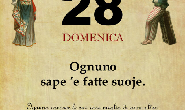 ‘O PRUVERBIO D’ ‘O JUORNO. Domenica 28 giugno 2020 28/06/2020 binews.it ATTUALITA', EVIDENZA, Il Proverbio del Giorno 0 di Gianni Polverino Ognuno sape ’e fatte suoje. Ognuno conosce le sue cose meglio di ogni altro.