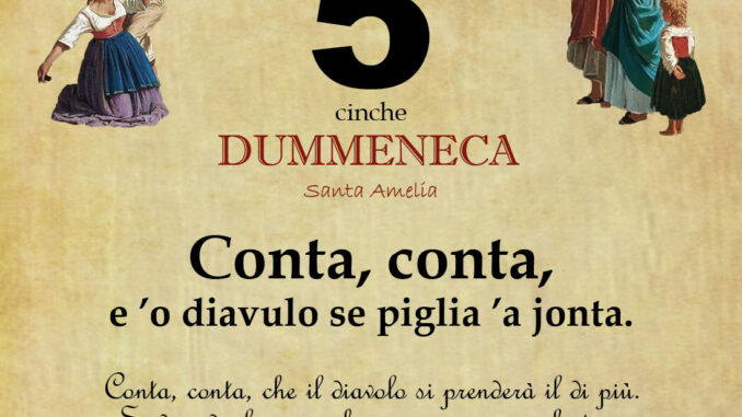 ‘O PRUVERBIO D’ ‘O JUORNO. Domenica 5 gennaio 2025 05/01/2025 binews.it ATTUALITA', EVIDENZA, Il Proverbio del Giorno 0 di Gianni PolverinoConta, conta, e ’o diavulo se piglia ’a jonta.Conta, conta, che il diavolo si prenderà il di più. Si dice degli avari che conservano vere fortune che lasciano quando muoiono.