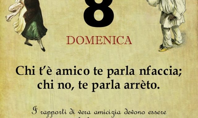 ‘O PRUVERBIO D’ ‘O JUORNO. Domenica 8 settembre 2019 08/09/2019 binews.it ATTUALITA', EVIDENZA, Il Proverbio del Giorno 0 di Gianni Polverino Chi t’è amico te parla nfaccia; chi no, te parla arrèto. I rapporti di vera amicizia devono essere leali e sinceri.