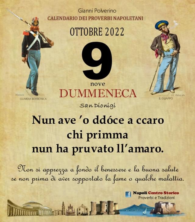 ‘O PRUVERBIO D’ ‘O JUORNO. Domenica 9 ottobre 2022