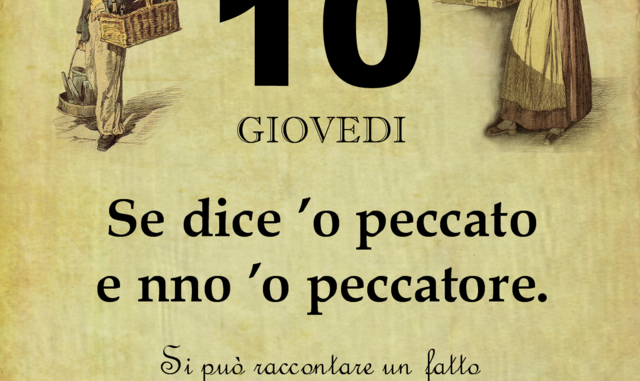 ‘O PRUVERBIO D’ ‘O JUORNO. Giovedì 10 maggio 2018 10/05/2018 binews.it ATTUALITA', Il Proverbio del Giorno 0 di Gianni Polverino Se dice ’o peccato e nno ’o peccatore. Si può raccontare un fatto ma non chi l’ha compiuto.