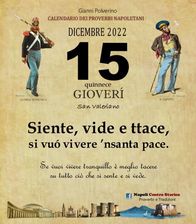 ‘O PRUVERBIO D’ ‘O JUORNO. Giovedì 15 dicembre 2022