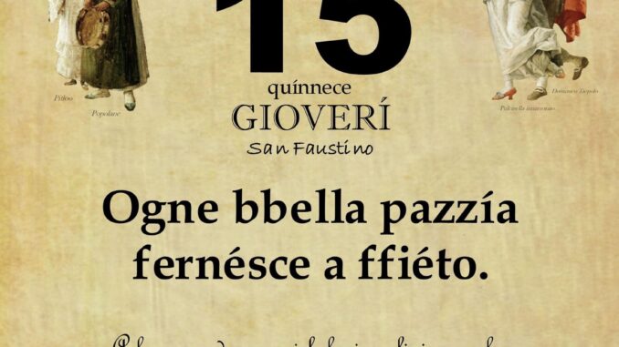 ‘O PRUVERBIO D’ ‘O JUORNO. Giovedì 15 febbraio 2024 15/02/2024 binews.it ATTUALITA', EVIDENZA, Il Proverbio del Giorno 0 di Gianni Polverino Ogne bbella pazzía fernésce a ffiéto. A lungo andare ogni bel gioco finisce male. Lo scherzo può essere divertente solo se dura poco. Non bisogna mai esagerare abusando della pazienza altrui.