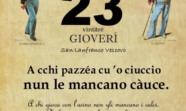 ‘O PRUVERBIO D’ ‘O JUORNO. Giovedì 23 giugno 2022 23/06/2022 binews.it ATTUALITA', EVIDENZA, Il Proverbio del Giorno 0 di Gianni Polverino A cchi pazzéa cu ’o ciuccio nun le mancano càuce. A chi gioca con l’asino non gli mancano i calci. Chi bazzica in un brutto ambiente deve sopportarne le conseguenze.