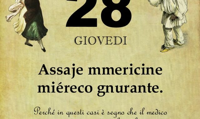 ‘O PRUVERBIO D’ ‘O JUORNO. Giovedì 28 febbraio 2019 28/02/2019 binews.it ATTUALITA', EVIDENZA, Il Proverbio del Giorno 0 di Gianni Polverino Assaje mmericine miéreco gnurante. Perché in questi casi è segno che il medico non essendo in grado di formulare una diagnosi, va avanti a tentativi.