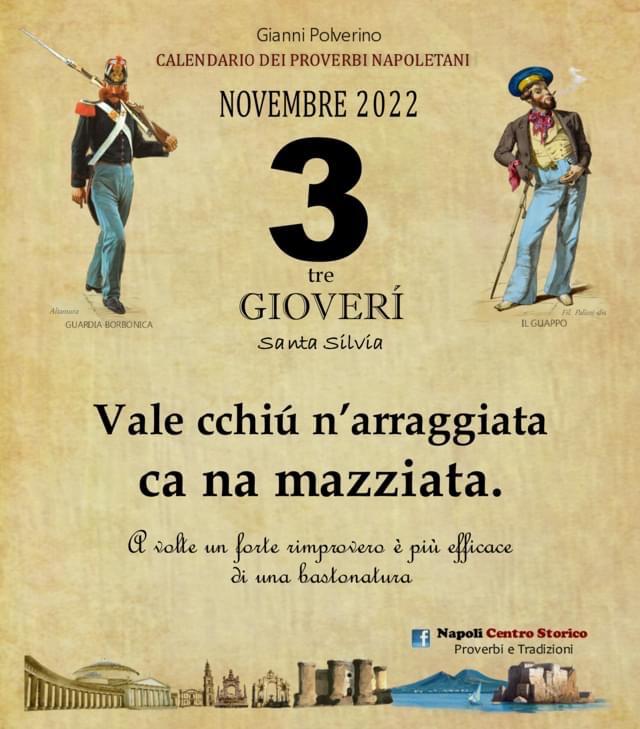 HomeATTUALITA'‘O PRUVERBIO D’ ‘O JUORNO. Giovedì 3 novembre 2022