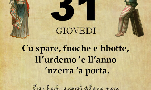 ‘O PRUVERBIO D’ ‘O JUORNO. Giovedì 31 dicembre 2020 31/12/2020 binews.it ATTUALITA', EVIDENZA, Il Proverbio del Giorno 0 di Gianni Polverino Cu spare, fuoche e bbotte, ll’urdemo ’e ll’anno ’nzerra ’a porta. Tra i fuochi augurali dell’anno nuovo, il vecchio chiude la porta e se ne va.