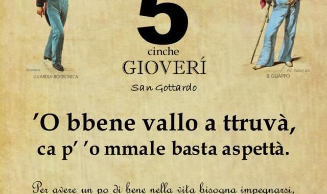 ‘O PRUVERBIO D’ ‘O JUORNO. Giovedì 5 maggio 2022 05/05/2022 binews.it ATTUALITA', EVIDENZA, Il Proverbio del Giorno 0 di Gianni Polverino ’O bbene vallo a ttruvà, ca p’ ’o mmale basta aspettà. Per avere un po di bene nella vita bisogna impegnarsi, anche con sacrifici, mentre per il male basta solo aspettare.