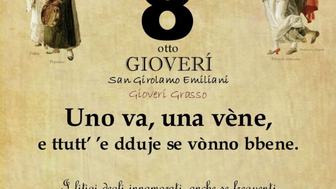 ‘O PRUVERBIO D’ ‘O JUORNO. Giovedì 8 febbraio 2024 08/02/2024 binews.it ATTUALITA', EVIDENZA, Il Proverbio del Giorno 0 di Gianni Polverino Uno va, una vène, e ttutt’ ’e dduje se vònno bbene. I litigi degli innamorati, anche se frequenti finiscono sempre con il riappacificarsi.