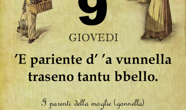 ‘O PRUVERBIO D’ ‘O JUORNO. Giovedì 9 agosto 2018 09/08/2018 binews.it ATTUALITA', Il Proverbio del Giorno 0 di Gianni Polverino ’E pariente d’ ’a vunnella traseno tantu bbello. I parenti della moglie (gonnella) sono sempre i benvenuti.