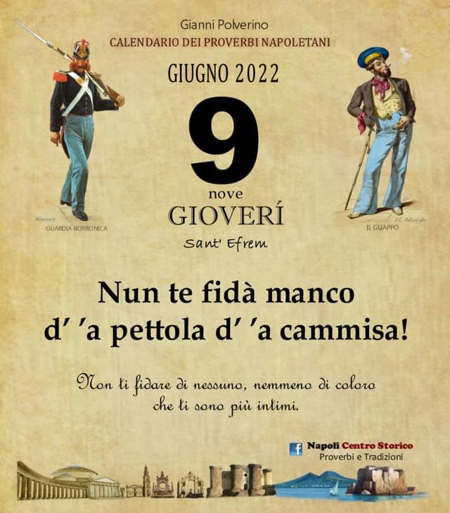 HomeATTUALITA'‘O PRUVERBIO D’ ‘O JUORNO. Giovedì 9 giugno 2022.