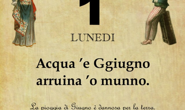 ‘O PRUVERBIO D’ ‘O JUORNO. Lunedì 1 giugno 2020 01/06/2020 binews.it ATTUALITA', EVIDENZA, Il Proverbio del Giorno 0 La pioggia di Giugno è dannosa per la terra.
