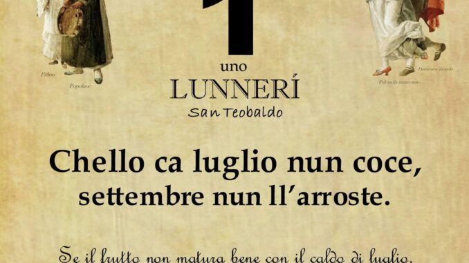 ‘O PRUVERBIO D’ ‘O JUORNO. Lunedì 1 luglio 2024 01/07/2024 binews.it ATTUALITA', EVIDENZA, Il Proverbio del Giorno 0 di Gianni Polverino Chello ca luglio nun coce, settembre nun ll’arroste. Se il frutto non matura bene con il caldo di luglio, perderà di sapore e qualità.