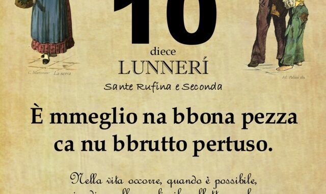 ‘O PRUVERBIO D’ ‘O JUORNO. Lunedì 10 luglio 2021 10/07/2023 binews.it ATTUALITA', EVIDENZA, Il Proverbio del Giorno 0 di Gianni PolverinoÈ mmeglio na bbona pezza ca nu bbrutto pertuso.Nella vita occorre, quando è possibile, rimediare alla meglio il malfatto, anche a costo di qualche sacrificio.