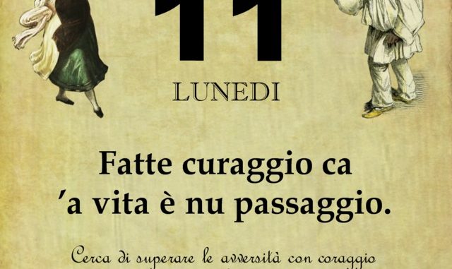 ‘O PRUVERBIO D’ ‘O JUORNO. Lunedì 11 marzo 2019 11/03/2019 binews.it ATTUALITA', EVIDENZA, Il Proverbio del Giorno 0 di Gianni Polverino Fatte curaggio ca ’a vita è nu passaggio. Cerca di superare le avversità con coraggio tanto, prima o poi, lasceremo per sempre le brutture di questa vita.
