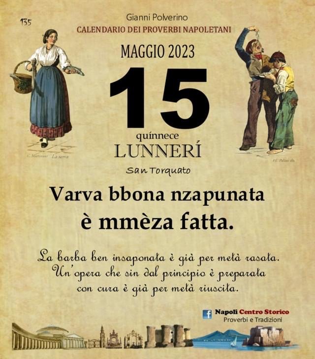 ‘O PRUVERBIO D’ ‘O JUORNO. Lunedì 15 maggio 2023