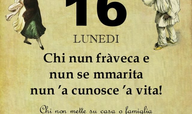 ‘O PRUVERBIO D’ ‘O JUORNO . Lunedì 16 settembre 2019 16/09/2019 binews.it ATTUALITA', EVIDENZA, Il Proverbio del Giorno 0 di Gianni Polverino Chi nun fràveca e nun se mmarita nun ’a cunosce ’a vita! Chi non mette su casa o famiglia non conosce le difficoltà della vita.