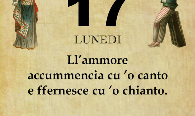 ‘O PRUVERBIO D’ ‘O JUORNO. Lunedì 17 agosto 2020 17/08/2020 binews.it ATTUALITA', EVIDENZA, Il Proverbio del Giorno 0 di Gianni Polverino Ll’ammore accummencia cu ’o canto e ffernesce cu ’o chianto. L’amore comincia con un canto e finisce con un pianto.