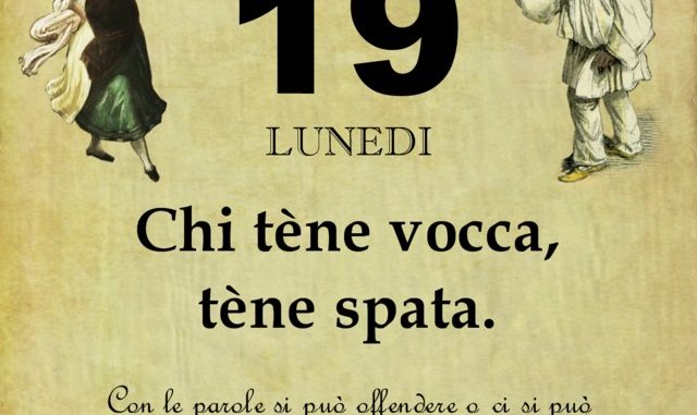 ‘O PRUVERBIO D’ ‘O JUORNO. Lunedì 19 agosto 2019 19/08/2019 binews.it ATTUALITA', EVIDENZA, Il Proverbio del Giorno 0 di Gianni Polverino Chi tène vocca, tène spata. Con le parole si può offendere o ci si può difendere meglio che con la spada.