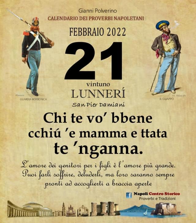 ‘O PRUVERBIO D’ ‘O JUORNO. Lunedì 21 febbraio 2022