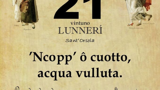‘O PRUVERBIO D’ ‘O JUORNO. Lunedì 21 ottobre 2024 21/10/2024 binews.it ATTUALITA', EVIDENZA, Il Proverbio del Giorno 0 di Gianni Polverino ’Ncopp’ ô cuotto, acqua vulluta. Quando ad un danno se ne aggiunge un altro
