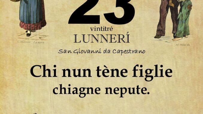 ‘O PRUVERBIO D’ ‘O JUORNO. Lunedì 23 ottobre 2023 23/10/2023 binews.it ATTUALITA', EVIDENZA, Il Proverbio del Giorno 0 di Gianni Polverino Chi nun tène figlie chiagne nepute. Chi non ha figli si dedica di più ai nipoti.