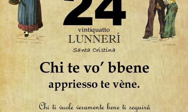 ‘O PRUVERBIO D’ ‘O JUORNO. Lunedì 24 luglio 2023 24/07/2023 binews.it ATTUALITA', EVIDENZA, Il Proverbio del Giorno 0 di Gianni Polverino Chi te vo’ bbene appriesso te vène. Chi ti vuole veramente bene ti seguirà anche in capo al mondo.