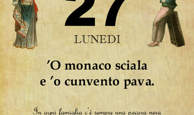 ‘O PRUVERBIO D’ ‘O JUORNO. Lunedì 27 luglio 2020 27/07/2020 binews.it ATTUALITA', EVIDENZA, Il Proverbio del Giorno 0 di Gianni Polverino ’O monaco sciala e ’o cunvento pava. In ogni famiglia c’è sempre una pecora nera che agisce a danno degli altri.