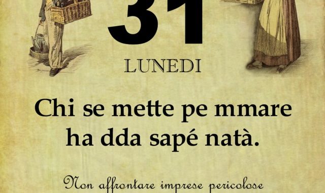‘O PRUVERBIO D’ ‘O JUORNO. Lunedì 31 dicembre 2018 31/12/2018 binews.it ATTUALITA', EVIDENZA, Il Proverbio del Giorno 0 di Gianni Polverino Chi se mette pe mmare ha dda sapé natà. Non affrontare imprese pericolose senza avere le dovute competenze.